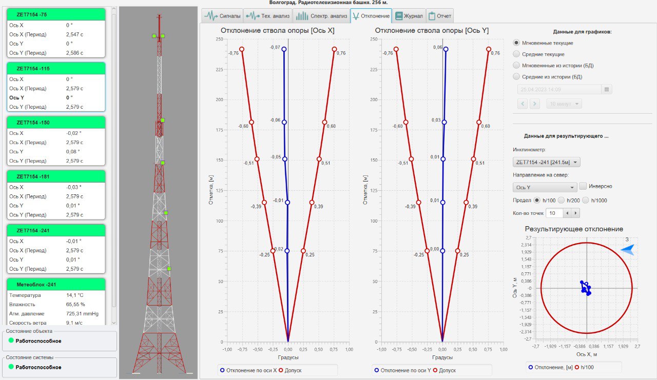 Оборудование объекта современными средствами автоматизированного контроля позволяет в непрерывном режиме отслеживать поведение конструкции, фиксировать отклонения от нормативных значений и своевременно выявлять потенциальные риски, связанные с эксплуатацией высотного сооружения.