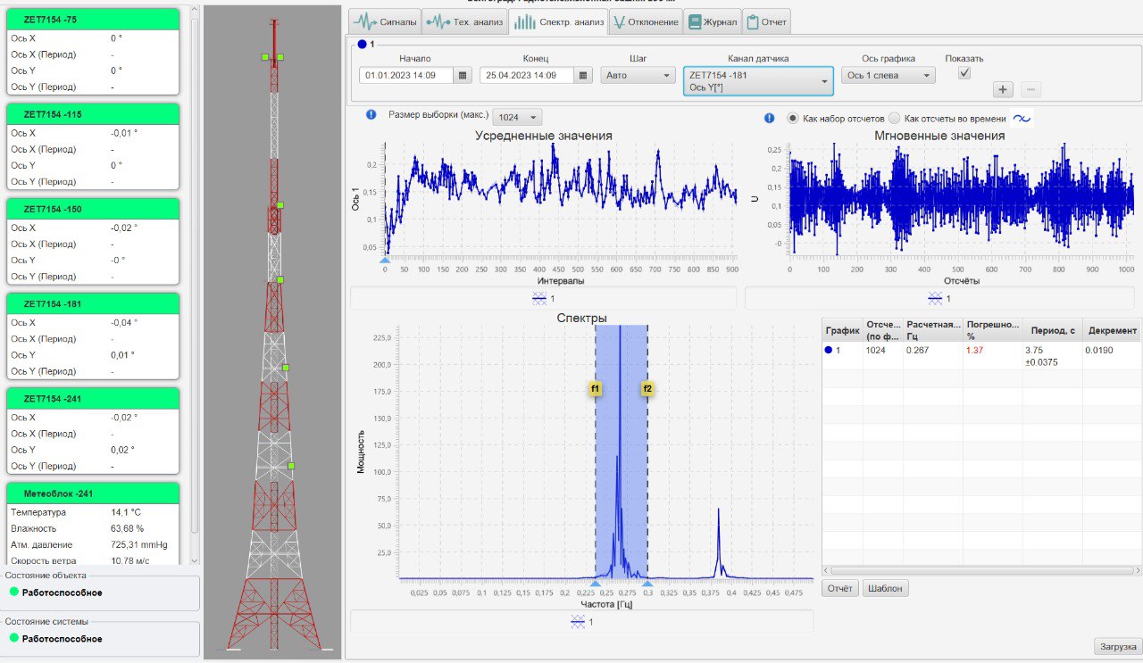 В рамках общего мониторинга технического состояния была реализована автоматизированная система мониторинга технического состояния антенно-мачтовых сооружений, включающая:
